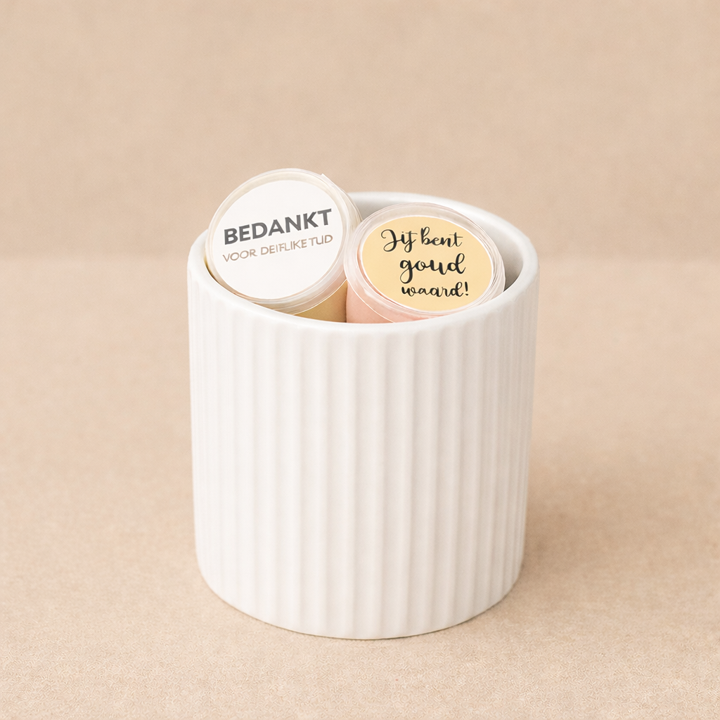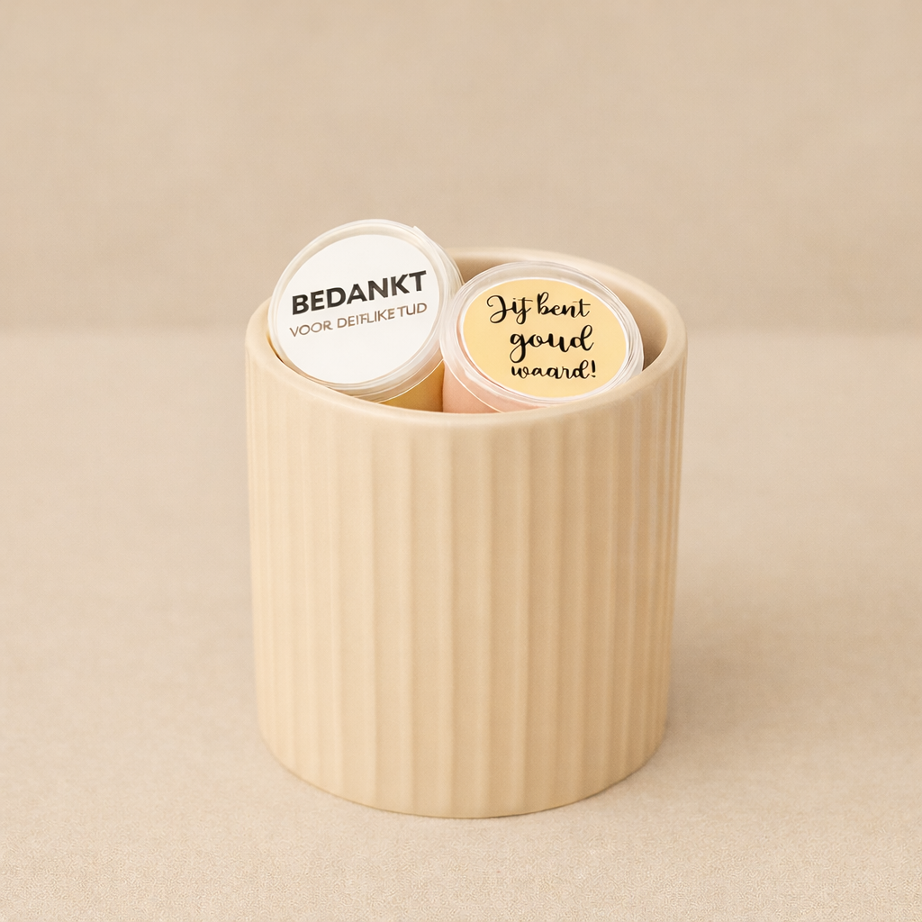 Een waxbrander met 3 geurige waxmelts die u zelf kunt kiezen, prachtig versierd met de leukste stickers, is dan ook een perfect cadeau!
